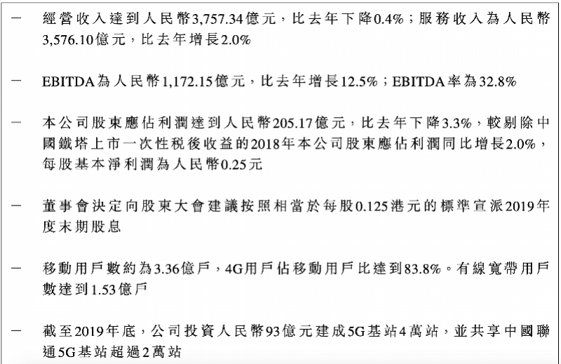 我国电信财报截图